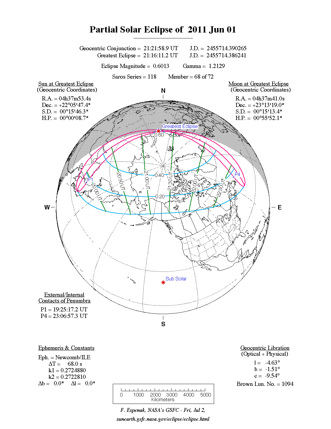The eclipse of June 1, 2011. Click on the illustration to obtain a version with higher resolution.